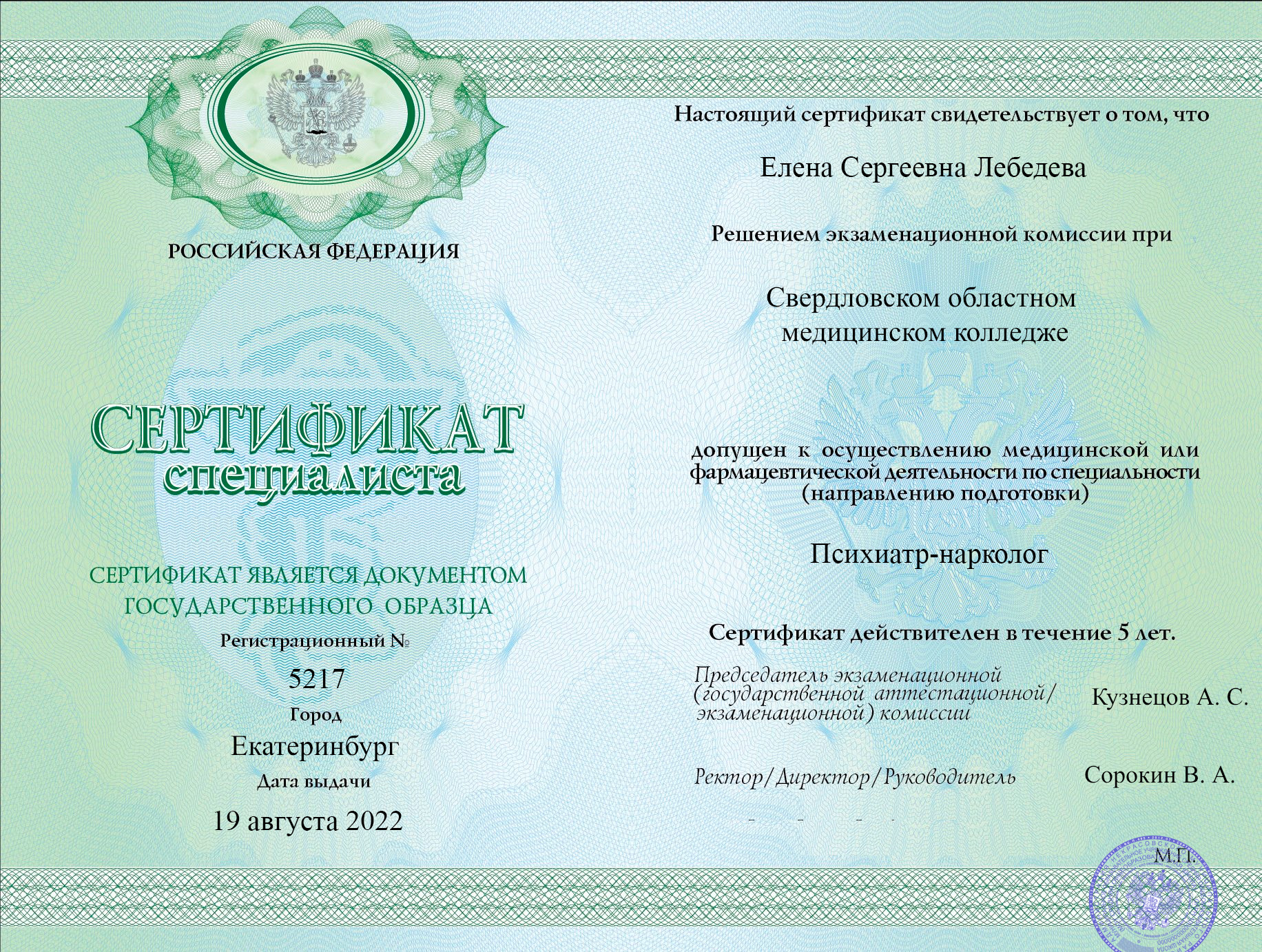 Елена Сергеевна Лебедева врач нарколог клиники доктора Стукаловой в Вознесенском